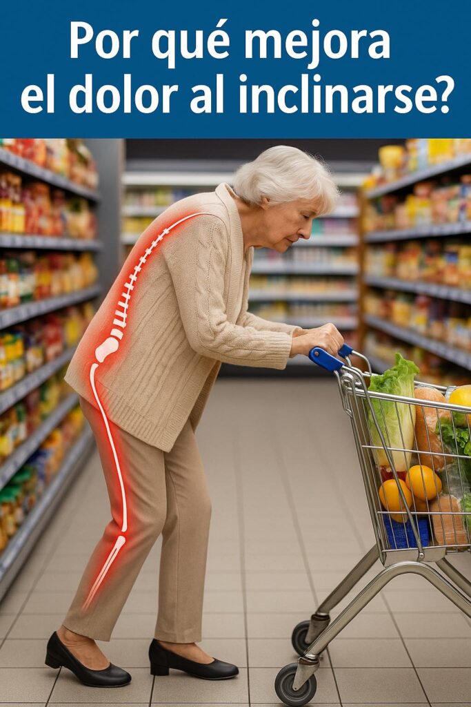 ¿Por qué? Porque cuando te inclinas —al apoyar los brazos en el andador, el carrito de la compra, o incluso la bici— el canal lumbar se abre ligeramente.